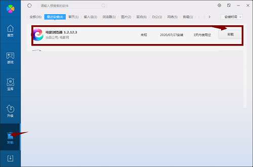 方法二:安装并打开360软件管家,在卸载选项的列表中找到电影浏览器,点击卸载即可