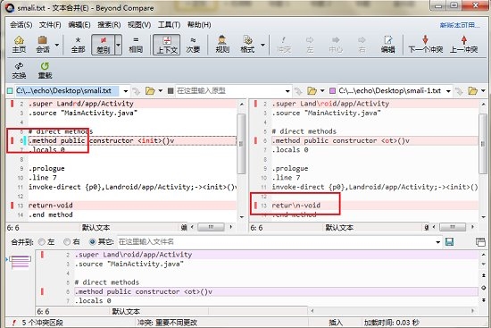 步骤3:现假设将光标放在左侧窗格的第6行,需要与右侧窗格的第13行进行文本对齐操作。首先执行“对齐方式”命令,随即文本合并会话界面发生变化,如下图图例所示。