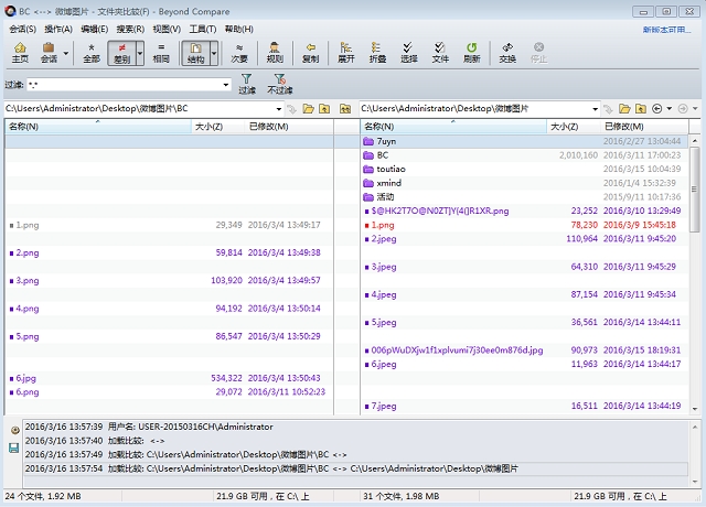 标准版支持文件夹对比、文件夹同步、文件对比、表格对比、16进制对比、Mp3对比、图片对比等基础功能。