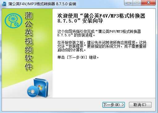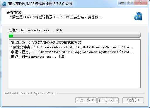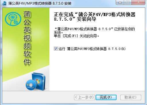 蒲公英F4V/MP3格式转换器最新版正在安装,耐心等待一下