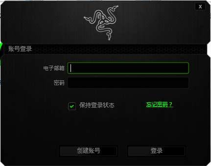 1、安装完成后,打开Razer Synapse 2.0,出现账号登录界面,有账号的用户可以输入邮箱和密码进行登录,没有的点击创建账号,建完账号后登录。