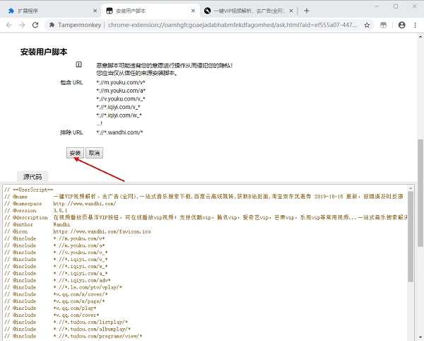 3、点击安装此脚本,来到安装界面。这里点击安装就可以了
