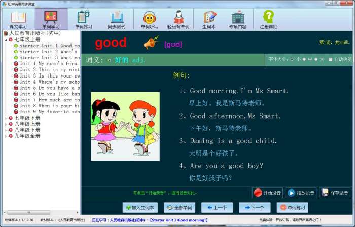 初中英语同步课堂软件功能