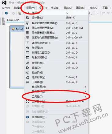 在我们进行窗体设计时,工具箱是一个可以让我们所见即所得的工具,我们可以直接在里面拖拽控件。首先,打开试视图-工具箱。然后将其固定在窗口的左端。 2、拖拽控件