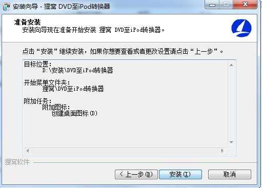 狸窝DVD至iPod转换器官方版正在安装,耐心等待一下
