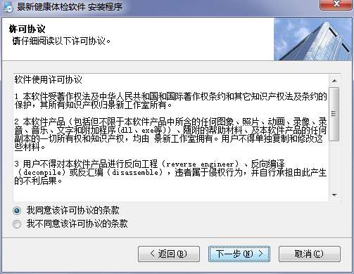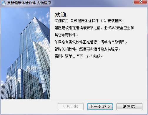 3.双击打开,进入景新体检管理系统软件界面,点击下一步