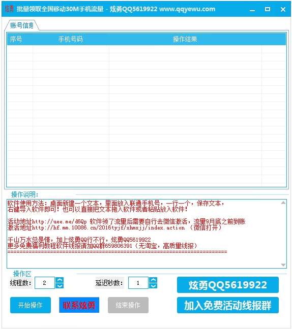 炫勇批量领取全国移动30M手机流量是手机流量领取工具,通过该款工具,移动手机用户能够非常便捷的领取到全国移动免费流量30M,直接手机扫码打开活动地址即可领取,非常方便。
