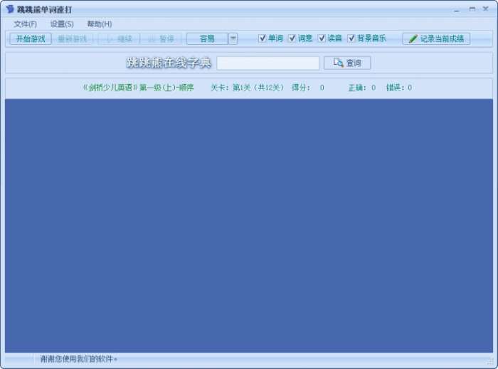 跳跳熊单词速打让您在开心娱乐的同时既可提高打字速度,又可记忆单词。它操作简单,安装方便,使用起来非常的便捷,快来下载吧。