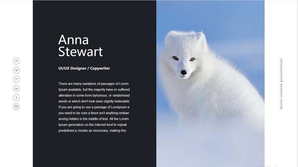PowerPoint模板内容页,由22张蓝色渐变幻灯片图表,搭配PPT文字排版。另外使用了欧美人物插图、白色狐狸插图等装饰。