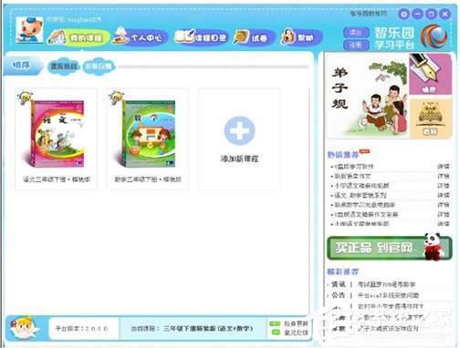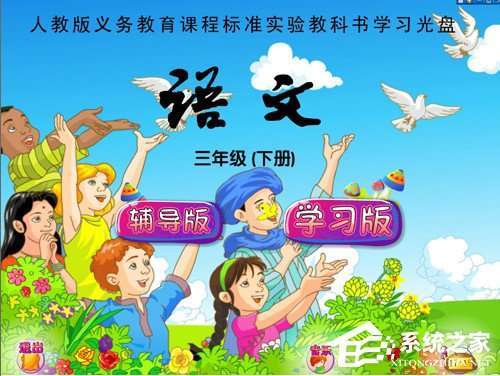 5、插入语文三年级下册,精装版课程盘,打开课程。如果要学习的课程盘在电脑中,点击课程图标可以直接打开课程。