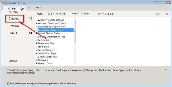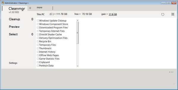 Cleanmgr +是一个便携式应用程序,它通过添加其他功能并删除比磁盘清理工具更多的垃圾,在Microsoft磁盘清理工具(Cleanmgr.exe)的基础上构建。