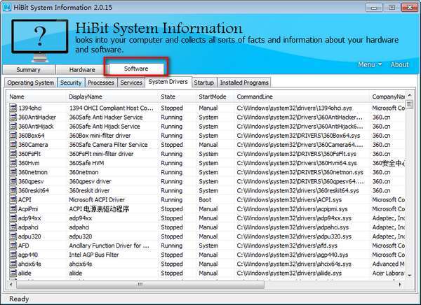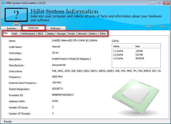 HiBit System Information它是一种可以帮助用户检测硬件信息的软件。使用软件的用户可以管理和检测计算机的硬件、软件和过程。而且使用时不需要安装,可以随身携带,存储在移动中U盘子或网盘,方便用户使用。