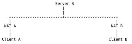 客户端A和客户端B不直接通信,而是先都与服务端S建立链接,然后再通过S和对方建立的通路来中继传递的数据。这钟方法的缺陷很明显,当链接的客户端变多之后,会显着增加服务器的负担,完全没体现出P2P的优势。