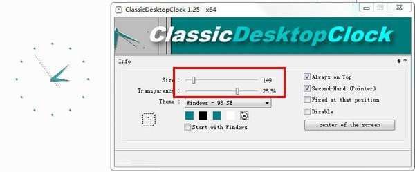 整体透明度,尺寸调整,以及不同时钟主题的选择,可用,并可定制。