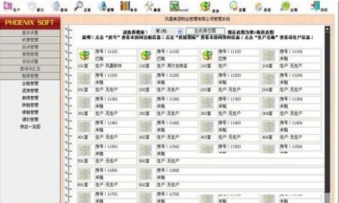楼座管理、房间管理、雇员管理、组织机构、客户管理、销售机会、跟踪记录、房间租用、停车场管理、停车场租用、线路管理、线路维护、线路租用、供应商管理、设备管理、设备售后服务、设备维护、设备维护提醒、报修管理、投诉管理、巡视管理、采购管理、收支管理、房态查询、车位租用查询、线路租用查询、角色管理、用户管理、首页新闻、邮件设置、配色方案、数据备份、图片格式、音视频格式、设置LOGO、流量统计、登录记录、傻瓜式安装、可视化配置。
