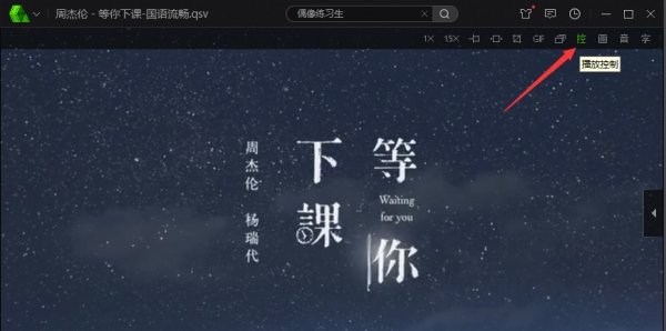 4.视频正常播放后我们根据图中提示先找到【控】字样按钮,会有提示是“播放控制”。然后单击按钮。