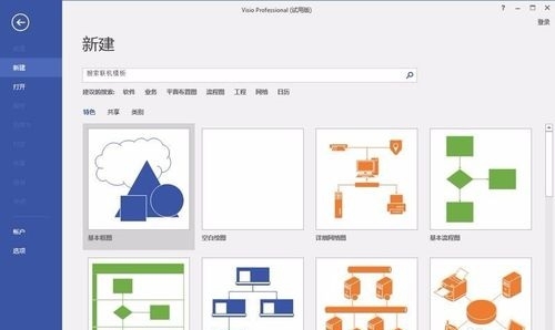 最后打开visio2017 可以根据自己的需要,建立相关的visio2017的模板,可以在这里下载很多联机的模板,很好用。.