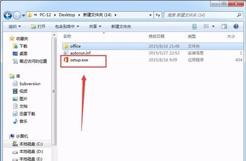 在PC下载网下载好了visio2017之后,解压出镜像iso文件。里面有一个office文件夹;可以选择64位的的安装;