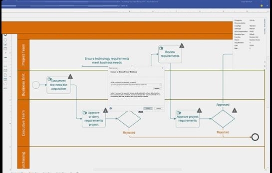 直接在流程图上结合成本或风险级别等信息,或将策略图表链接到流程步骤。在组织中共享与数据链接的流程图,以提高透明度和符合性,让所有人了解最新的流程 KPI。