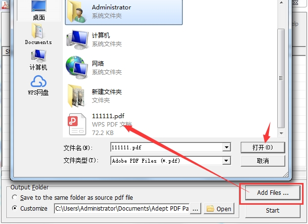 运行软件后点击Add Files添加文件,选择要解密的PDF文档,点击打开。