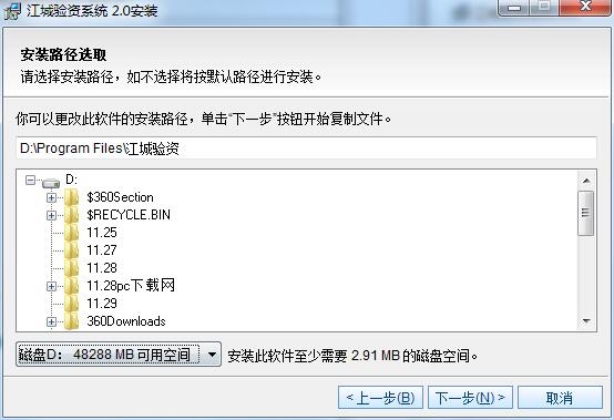 5.选择安装位置,系统默认的是C:Program Files江城验资,这里以D:PC下载网江城验资为例,点击下一步,如图: