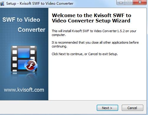 1、下载kvisoft-swf2video-trial.exe软件直接启动,点击next继续安装