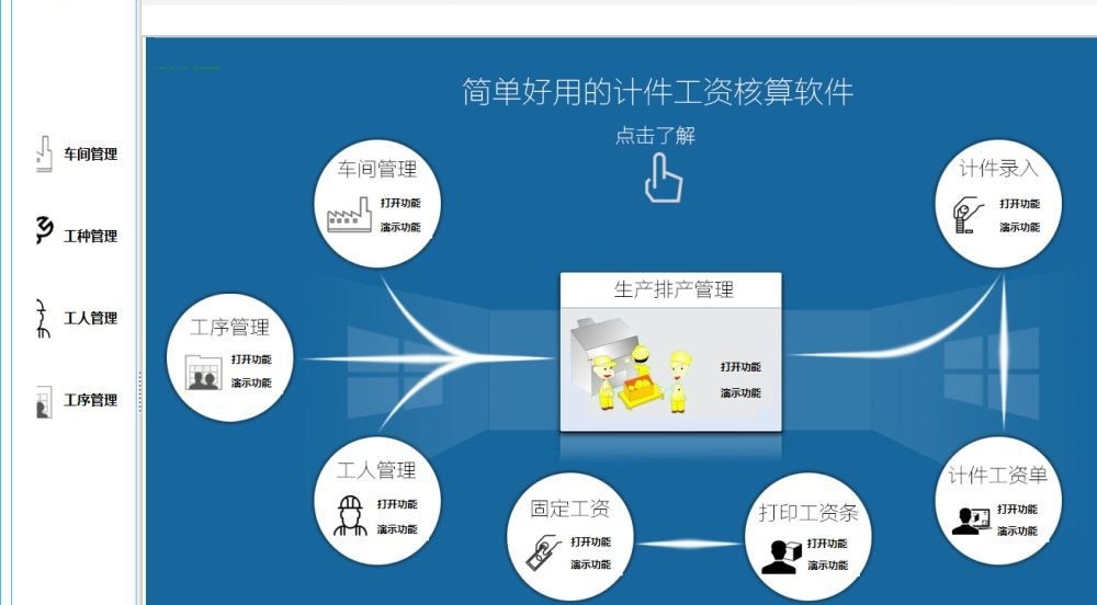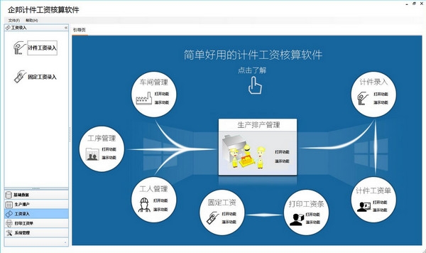 企邦计件工资核算软件最新版是款针对各个大小型企业所打造的计件工资管理工具。企邦计件工资核算软件官方版能够为用户提供录入员管理、车间管理、工种管理、工人管理、工序管理、基础数据、生产排产、工资录入、打印工资单等多项管理功能。企邦计件工资核算软解决计件中的繁杂同时保证计件的正确性,通过排产功能将每个生产单的每个工序与工人直接锁定,所以只要排产正确了,后面登记工序数就简单了,只要在每天记录下完成数就可以了。