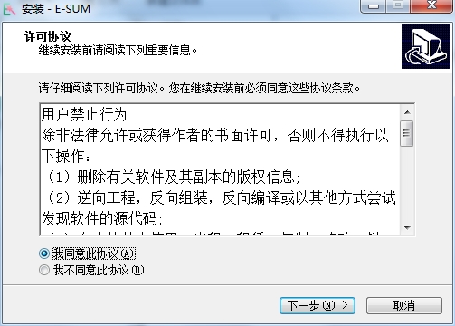 1、下载E-SUM_v2.0.1_setup.exe程序,请您详细阅览相关最终用户许可协议,您如果接受最终用户许可协议,请点击“我接受”功能按钮