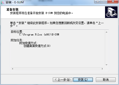 2、选择自己想要的路径C:Program Files (x86)E-SUM,选择完成后点击确定,然后点击下一步,一般系统安装在默认路径下
