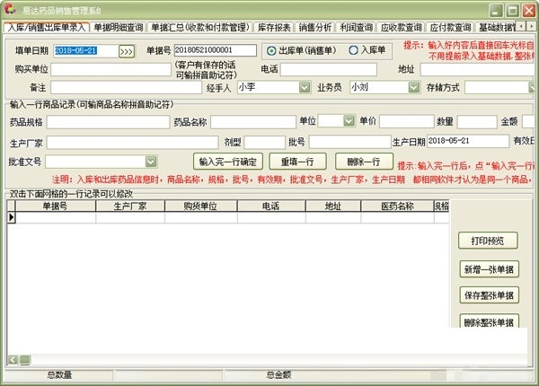 易达药品销售管理系统是一款主要面向医药行业药品行业销售开单,医药批发开票,药品生产销售公司。数据录入快速后,数据自动保存,支持拼音助记符录入查询功能,加快录入速度,报表打印支持自定义,边距和打印位置自已可以调整等,支持查询统计导出汇总统计等功能。支持打印出库单销售单和入库单,支持库存管理,盘点,销售利润统计功能,财务应收应付管理功能。录入多少行销售商品记录软件就打印多少行,能自动分页打印,快捷的单据前一张,后一张查找功能。