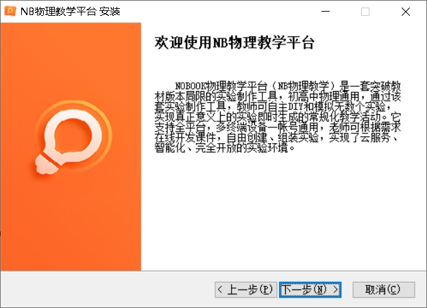 1、在PC下载网下载NB物理教学平台最新版压缩包,然后进行解压,得到exe程序,双击该程序,点击下一步