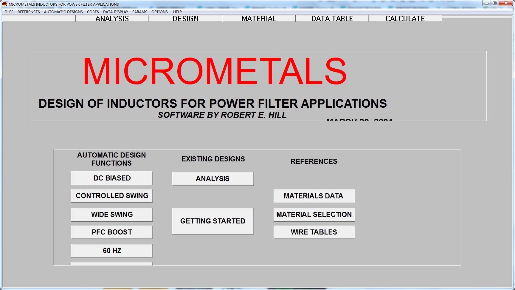 MICROMETALS电脑版是款很多行业中都在使用的电感设计工具。MICROMETALS正式版为设计师提供了进行电流设计、线圈配置、材料选择等功能。MICROMETALS提供了最好的测量方式,可以根据用户输入的直流电压、交流电压、导线材料、最大直流电阻、最大电流电感马上显示出您需要计算的数值,从而提供电气设计的效率。