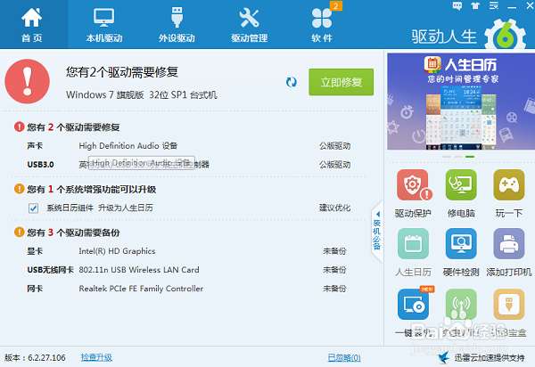 驱动人生是一款免费的能够实现智能检测硬件并自动查找安装驱动的工具。驱动人生可以为用户提供最新的驱动供用户实时更新。驱动人生操作起来是很简单流畅的,拥有最完整稳定驱动库的驱动人生,几乎可以解决所有驱动问题。想要挑选最合适的驱动程序?就选择驱动人生吧!~