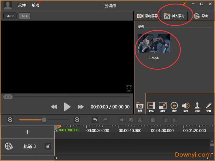 2、登录完毕后在剪辑师界面的右上方点击“插入素材”按钮,并将我们想要剪辑的视频添加进来;