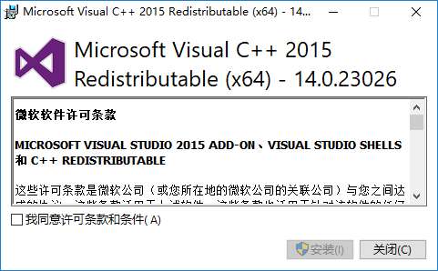 Visual C ++ Redistributable Packages安装Visual C ++库的运行时组件。这些组件是运行使用visual studio 2015开发的C ++应用程序并动态链接到Visual C ++库所必需的。即使没有安装Visual Studio 2015,这些程序包也可用于在计算机上运行此类应用程序。这些包安装这些库的运行时组件:C运行时(CRT),标准C ++,MFC,C ++ AMP和OpenMP。