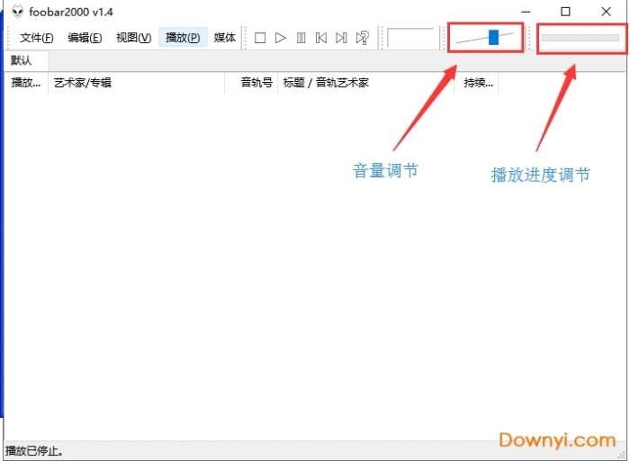 4、我们设置好音乐播放的选先后,我们还可以在软件界面的右上角看到有音量调节和播放进度调节的选项,我们也可以根据自己的需要来进行调节,非常的简单,有需要的小伙伴可以来下载体验。
