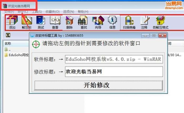 将窗口中绿色的指针拖到需要修改的软件标题,标题修改器会自动捕捉软件标题,然后填写新的标题进行修改