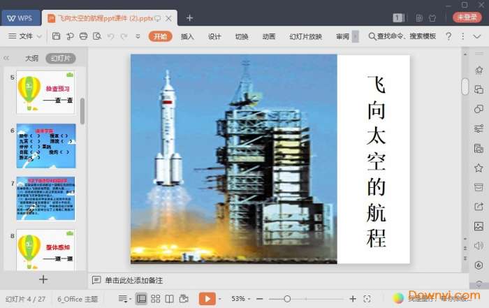 飞向太空的航程ppt课件为你在学习这篇文章的时候激发学生们对于航天事业的热情,让同学们学习杨利伟的事迹,一次为契机让学生们喜欢上探索未知事物的热情。课件讲解比较全面,非常适合当做学习资料!
