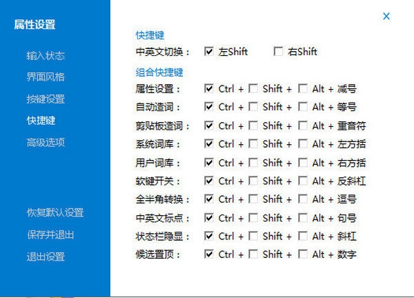 CTRL+减号键:打开输入法属性配置对话框,还可定义为CTRL+SHIFT+减号键、CTRL+ALT+减号键。