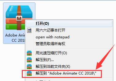 1、先从本站下载新版的Animate CC 2018安装包,右击安装包选择“解压到“Adobe Animate CC 2018””。