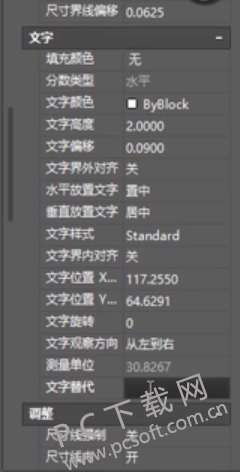 2、选完成后,在AutoCAD 2016软件界面左侧出现一个界面,拖动滚动条找到“文字”选项,在文字选项中找到“替换文字”,输入您要替换的数值就可以修改AutoCAD 2016图纸的标注宽度了。