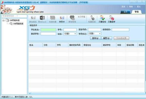 3、学员在校状态,实时反映学员到、离校的状态.学员到、离校状态实时刷新,便于校区学员管理。