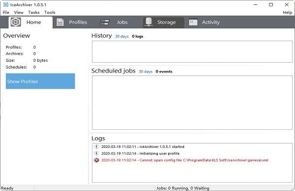 该程序带有干净直观的界面,易于浏览和管理。“主页”选项卡被设计为摘要窗口,该窗口显示过去30天执行的任务以及备份历史记录和日志的概述。您可以通过单击“运行”按钮从“配置文件”选项卡创建备份。