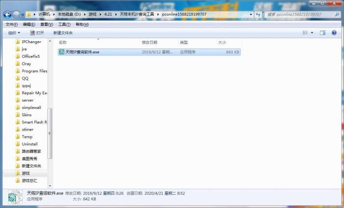 2.解压天筱本机IP查询工具软件压缩包,选中exe程序