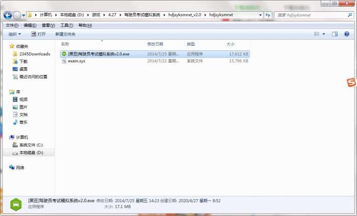 2.解压驾驶员考试模拟系统软件压缩包,选中exe程序