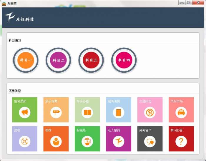 左奴考驾照软件官方版是一款实用性非常强的电脑上的驾照模拟考试软件。左奴考驾照软件最新版可辅助用户生成科目一、四试题进行电脑刷题巩固知识点,还有科目二和科目三的攻略、报名指南等等。左奴考驾照软件官方版的题库全面高效,考生在考驾照时使用帮助用户巩固,加深记忆可以效率更高,非常适用考前刷题,实用高效。