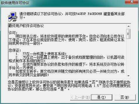 3.双击exe程序,进入明视通网络可视电话软件安装界面阅读许可协议,点击是