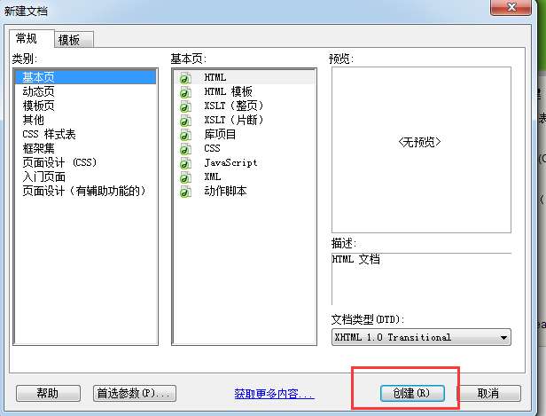 2、在打开的新建窗口中,选择您要创建的文件类型,选择完成后点击【创建】就可以了。