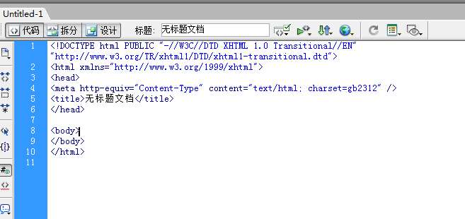 3、然后一个dreamweaver的网页就可以创建好了,您可以在其中输入代码。