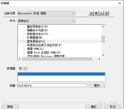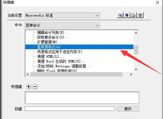3、在打开的快捷键窗口中找到套用源格式。